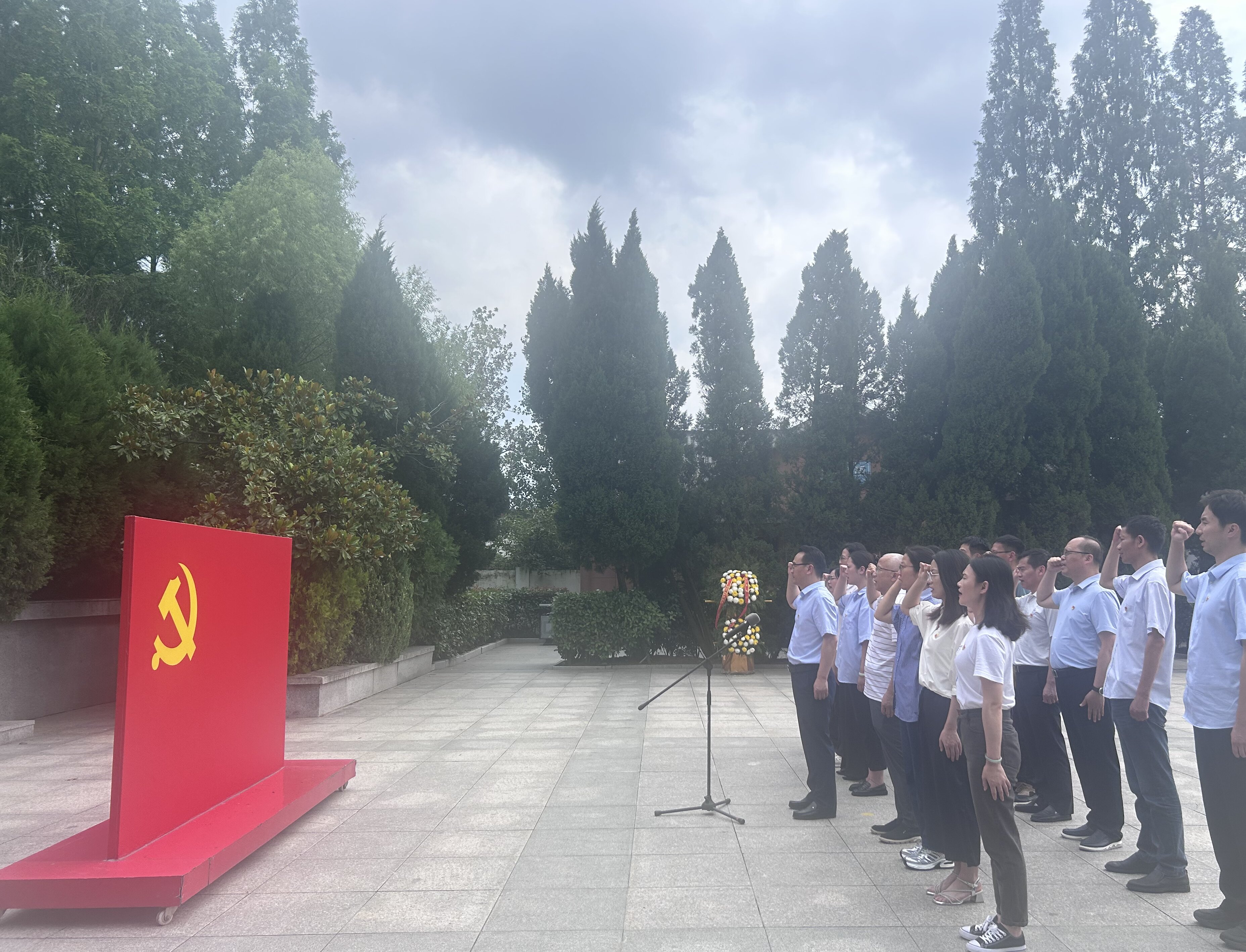 在安徽第一面党旗纪念园内,支部全体党员向革命烈士纪念碑敬献花篮,表达对革命先烈的崇高敬意和深切缅怀。集团党委委员、副总经理王奇带领大家面对党旗,重温入党誓词。随后支部党员参观了小甸集特支纪念馆,通过一幅幅历史照片,一件件珍贵实物和一个个感人故事,了解中共小甸集特别支部的成立过程,重温革命前辈的英勇事迹,真切感受先烈们满腔的爱国热情、坚定的革命信仰和不怕牺牲的奋斗精神。