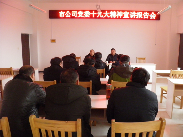 近日,蚌埠市公司党委委员、副经理吴泽星同志到固镇公司宣传贯彻十九大精神,全体在岗党员参加了报告会。