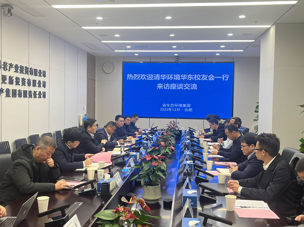12月19日,清华大学环境学院华东校友会及安徽省环境保护产业协会一行到集团考察,围绕生态环境板块的业务、技术、项目合作进行了深入座谈交流,省生态环境产业集团党委副书记、工会主席、职工董事杨晓彬主持座谈。