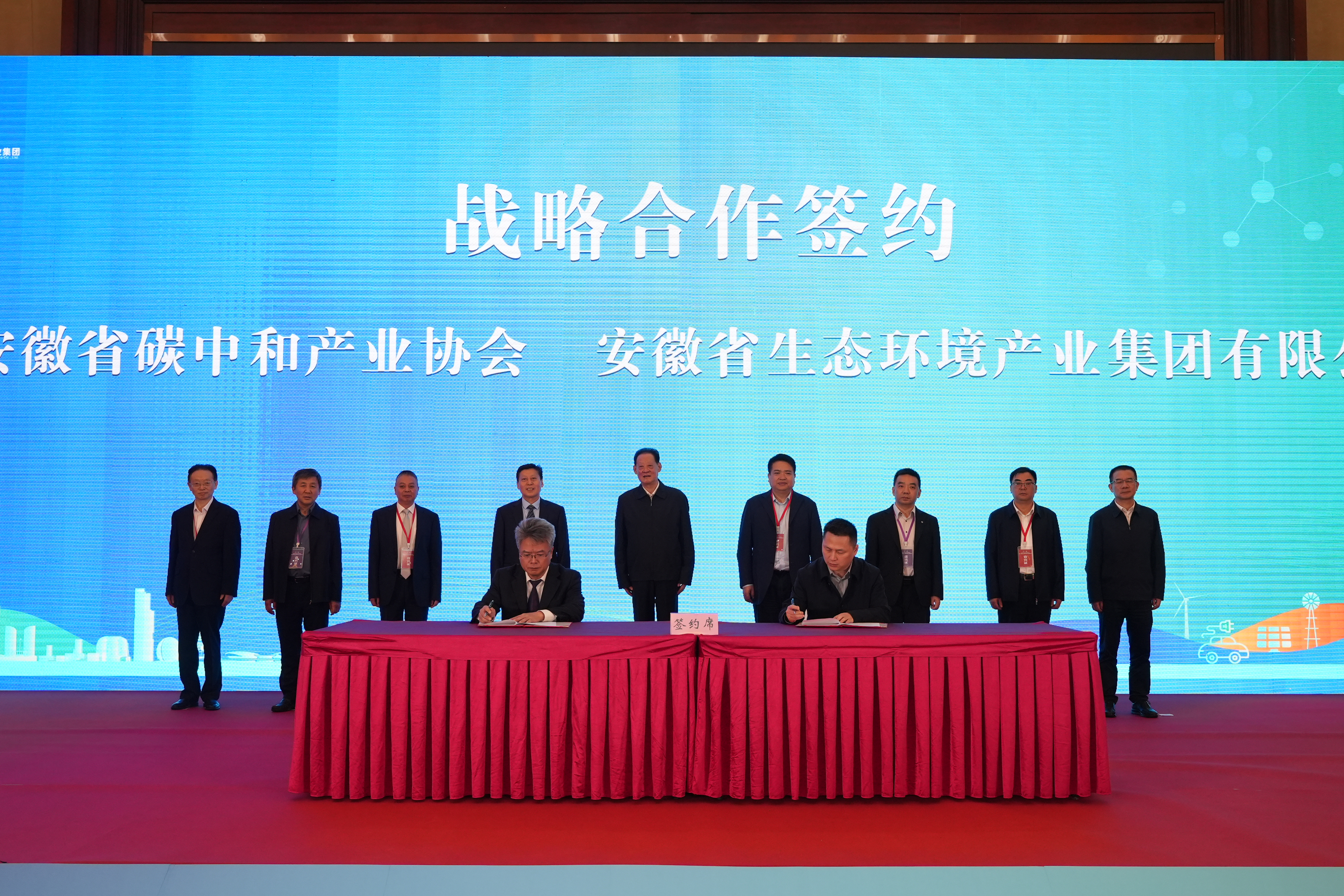 安徽省生态环境产业集团与安徽省碳中和产业协会签订了战略合作协议,作了《生态强省的践行者 美丽安徽的守护人》报告,详细介绍了集团在服务生态强省战略、投入绿水青山保护、推动降碳减污扩绿新增长、推进绿色低碳产业发展等方面的发展思路、举措和下一步产业布局。