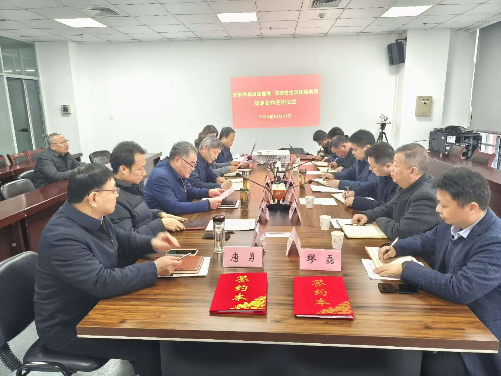 12月21日上午,省生态环境集团与安徽省巢湖管理局在合肥签订战略合作协议。省生态环境集团党委书记、董事长罗太忠,安徽省巢湖管理局党委书记、局长黄永宏出席并见证签约。