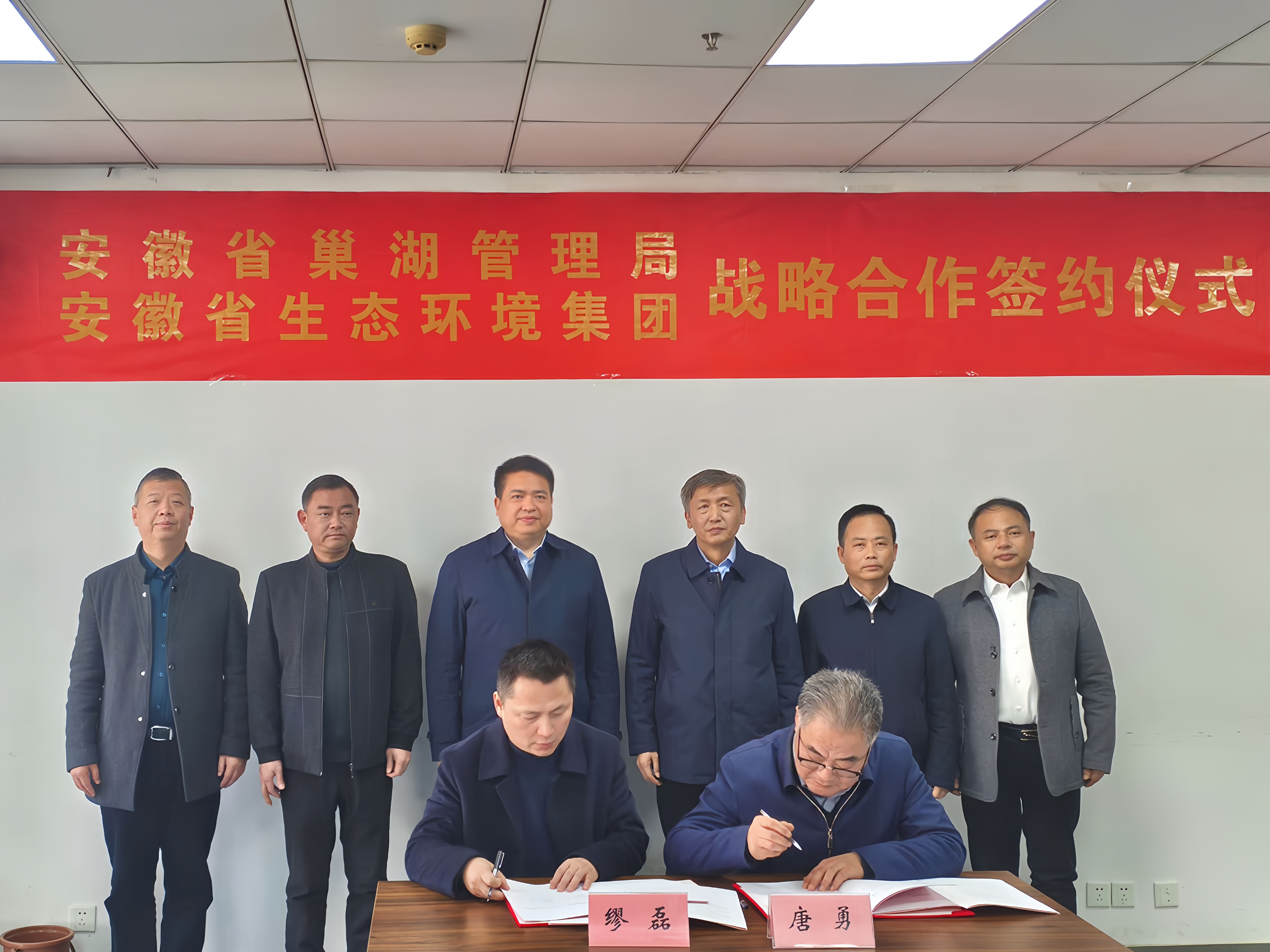 集团公司党委委员、副总经理缪磊,省巢湖管理局党委委员、副局长唐勇代表双方签订战略合作协议,环境科技集团、生态修复公司以及双方有关部门负责同志参加签约仪式。