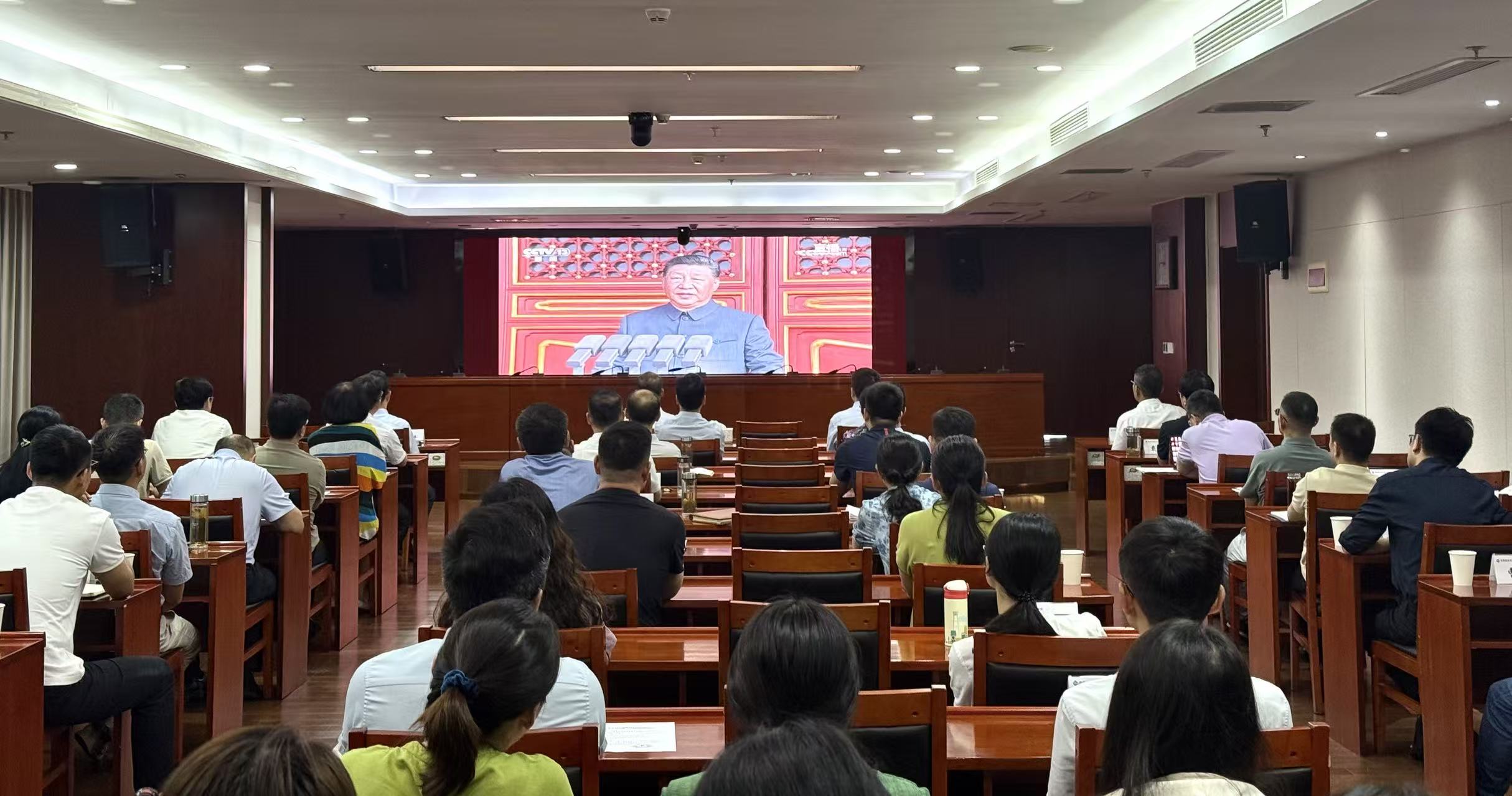 9月3日上午,纪念中国人民抗日战争暨世界反法西斯战争胜利80周年大会在北京天安门广场隆重举行。省生态环境集团党委紧扣“强国复兴有我”活动主题开展主题党日活动,组织广大党员干部职工集中收看大会直播盛况,认真聆听习近平总书记重要讲话,共同见证振奋人心的历史时刻。