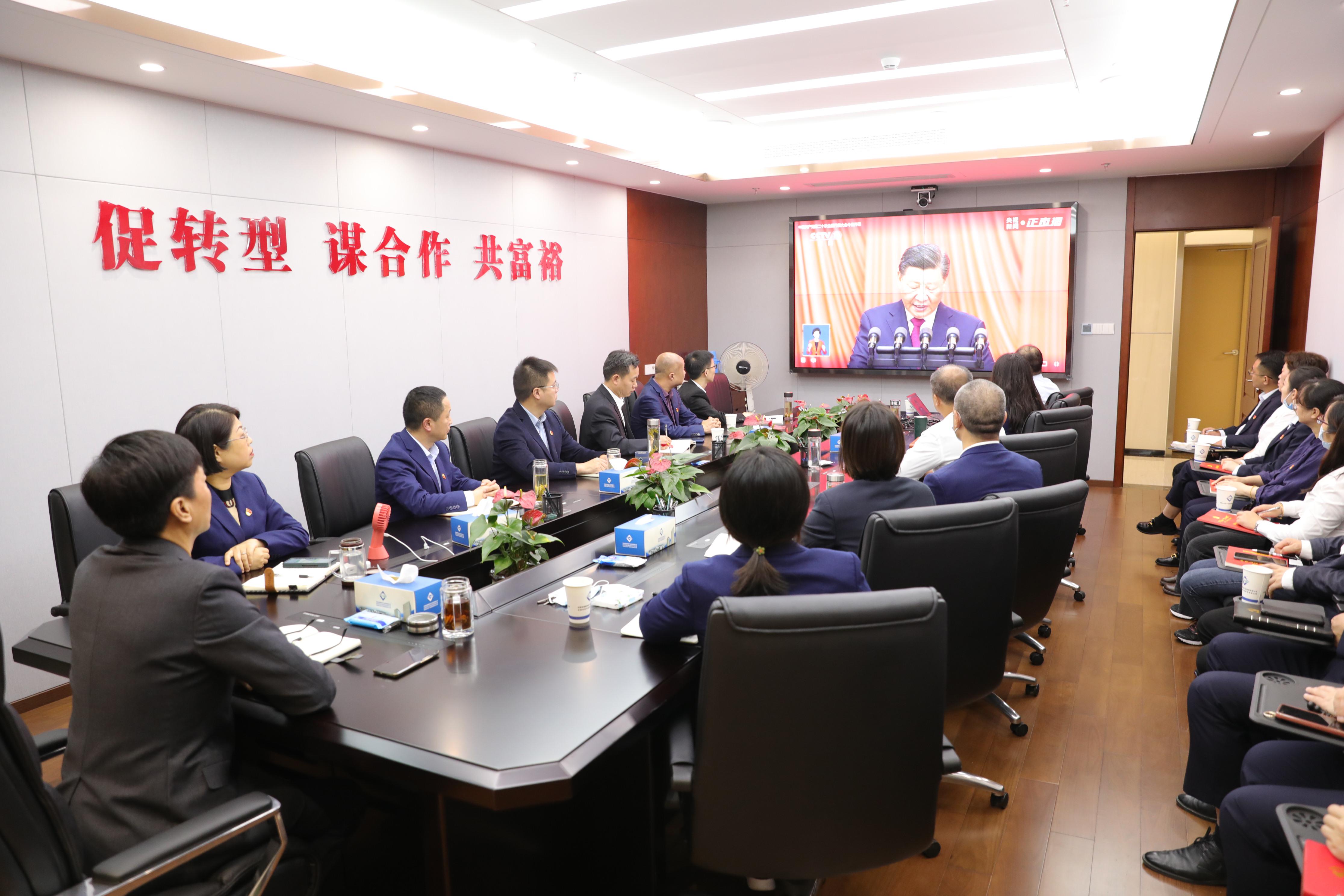 集团公司党政领导班子、中层以上干部职工及本部全体党员集中收看党的二十大开幕会
