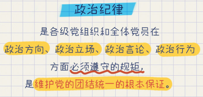 政治纪律在“六大纪律”中排在首位,说明政治纪律是最重要、最根本、最关键的纪律,对其他纪律具有统领性。政治纪律是各级党组织和党员在政治行动和政治言论两个方面所必须遵循的规则。所以,在“对违反政治纪律行为的处分”中,把“在重大原则问题上不同党中央保持一致且有实际言论、行为或者造成不良后果”作为第一条。就是说,在重大原则问题上不同党中央保持一致,无论是言和行,都是不被允许、严厉禁止的,如果违反了,就会受到警告或者严重警告处分,严重一点,就会被撤销党内职务或者留党察看,再严重的,就直接被开除党籍。