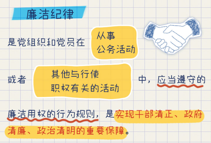 2015年,中共中央印发了《中国共产党廉洁自律准则》(以下简称《准则》),分别对党员和党员领导干部廉洁自律作出了规定,为党员干部树立了一个看得见、摸得着的高标准,体现了“自律”的要求。如果说《准则》规定的内容是倡导的,是该做的,那么《条例》对廉洁纪律的规定就是禁止的,是不能做的。