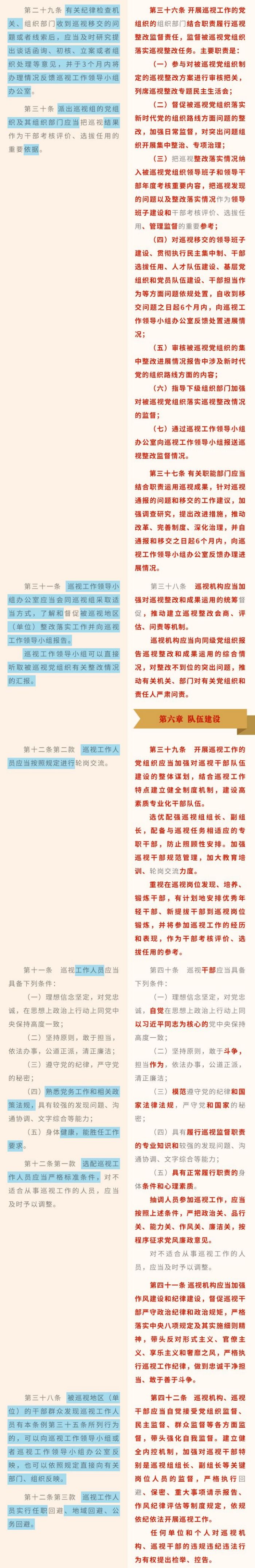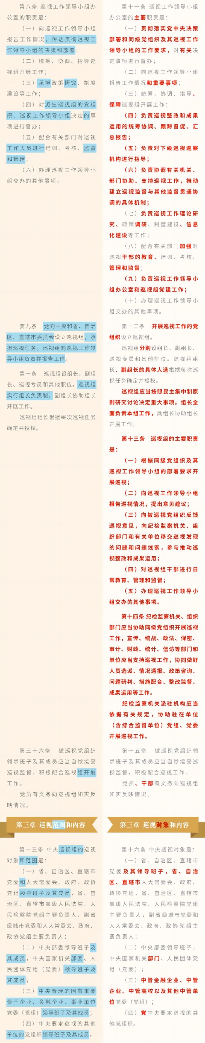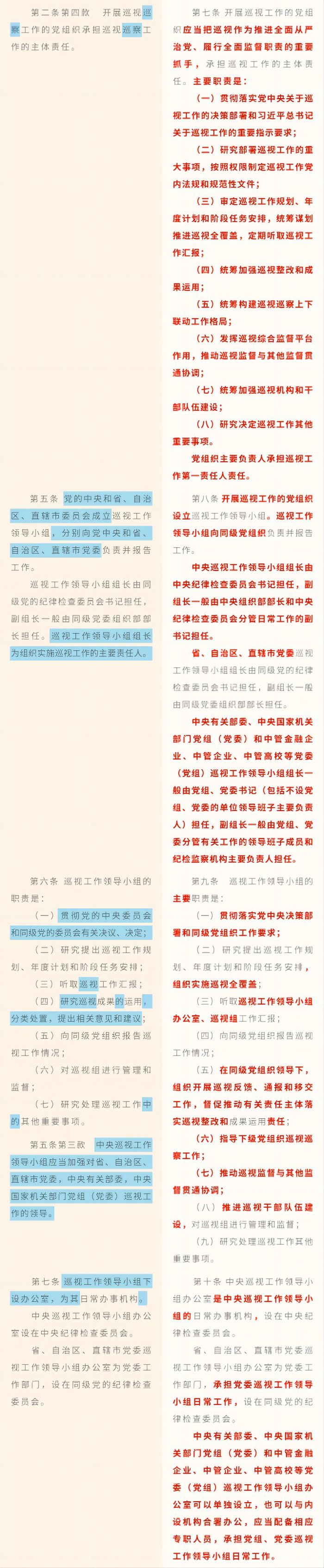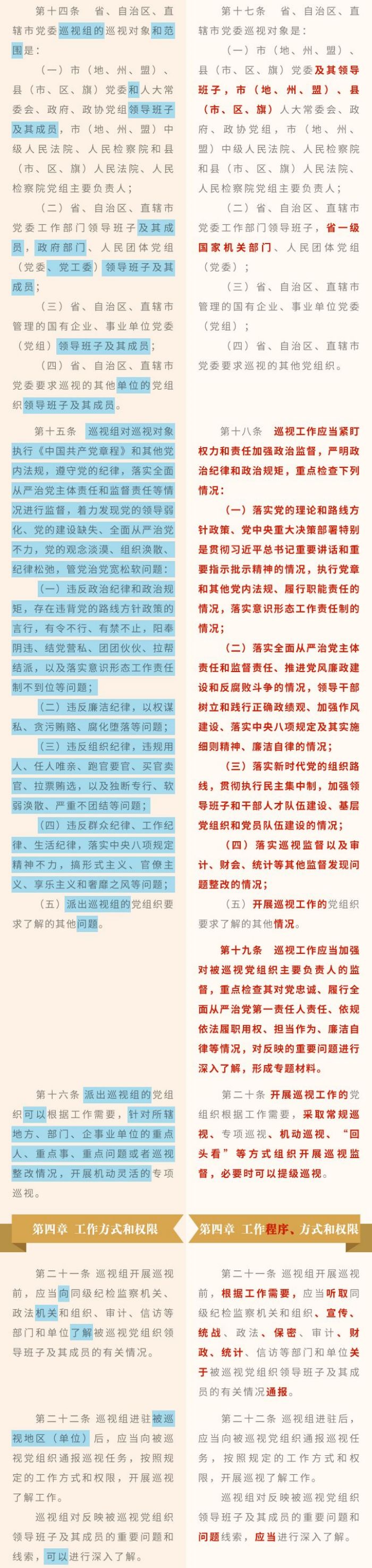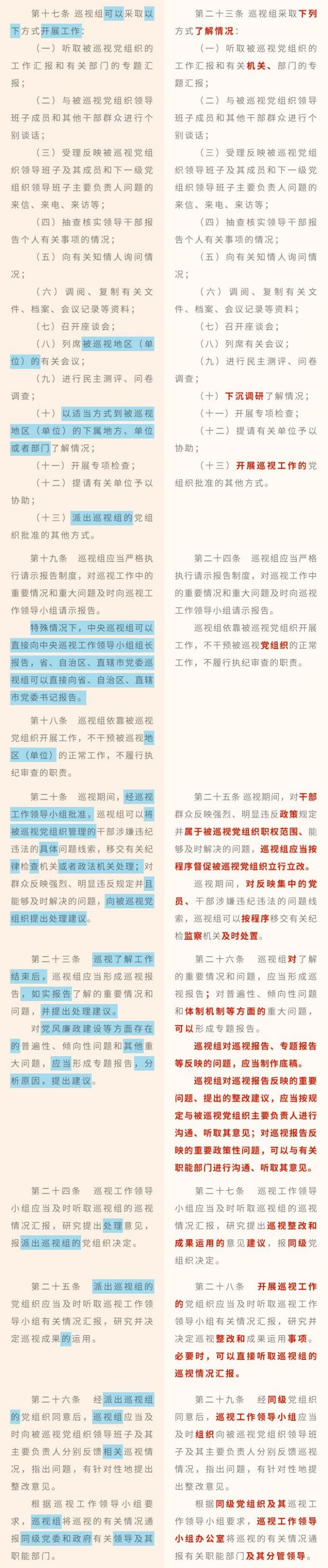 《中国共产党巡视工作条例》修订条文对照表