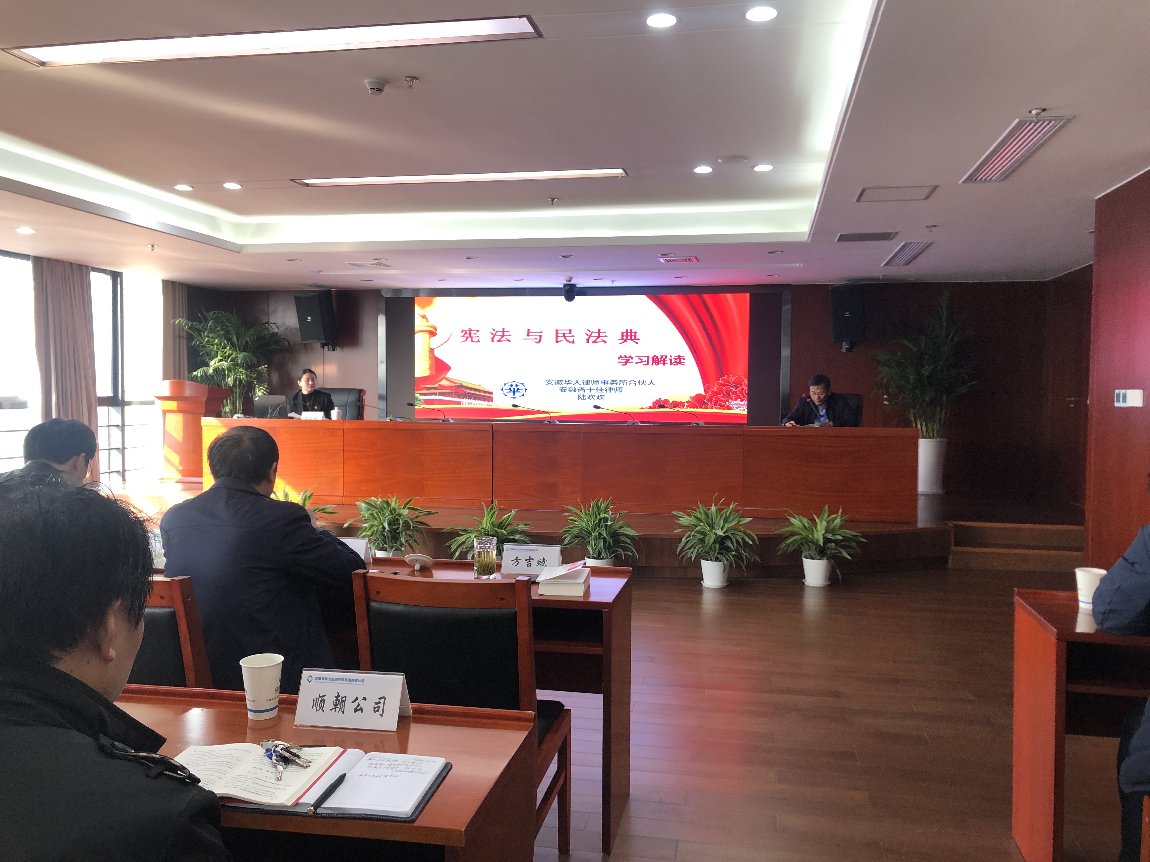 会上,安徽华人律师事务所合伙人陆欢欢律师作《宪法与民法典学习解读》专题讲座,主要介绍了宪法的发展历程、宪法的结构和主要内容以及婚姻、继承相关的法律知识。