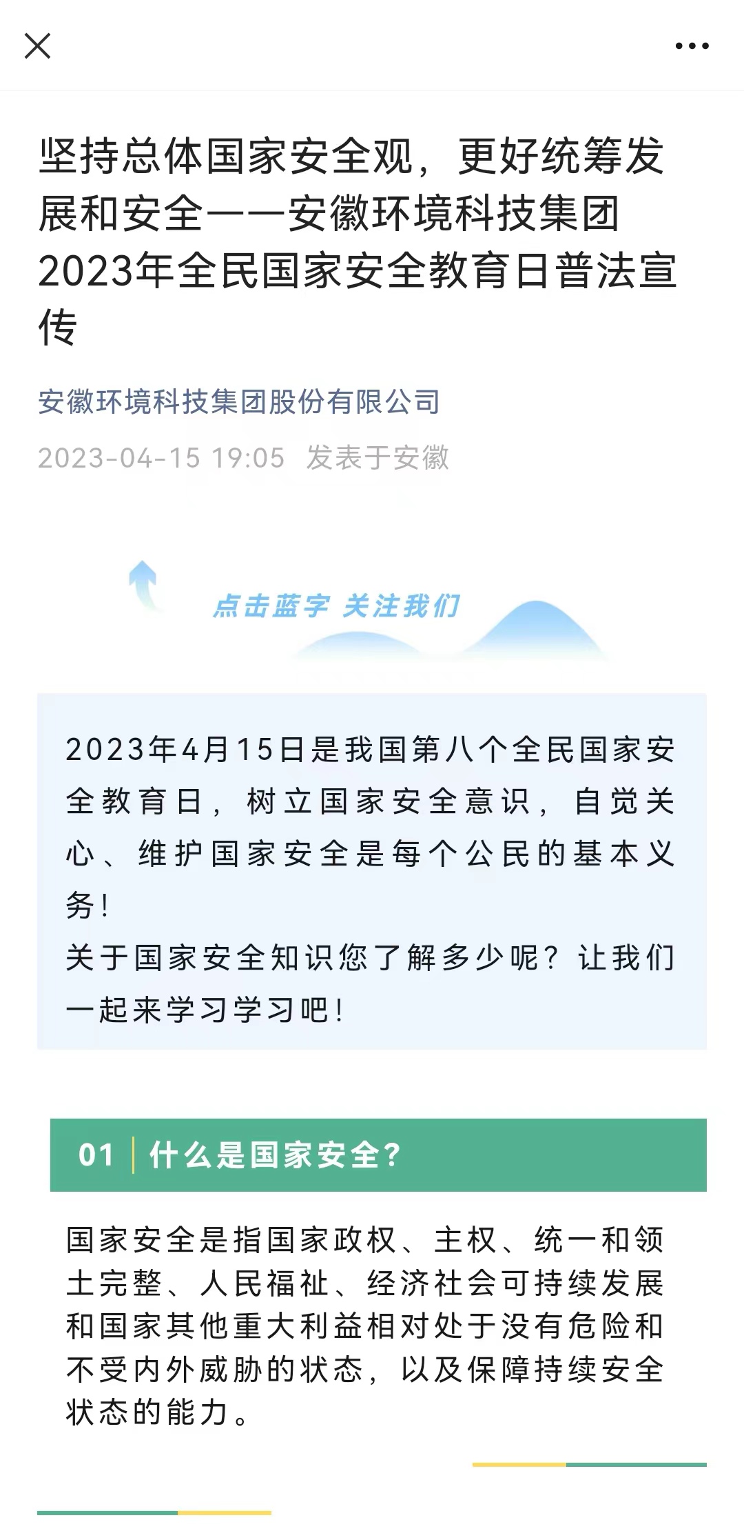环境公司、发展公司、地产集团在微信公众号、官网政策法规平台上传国家安全相关法律法规,在办公场所张贴宣传海报。