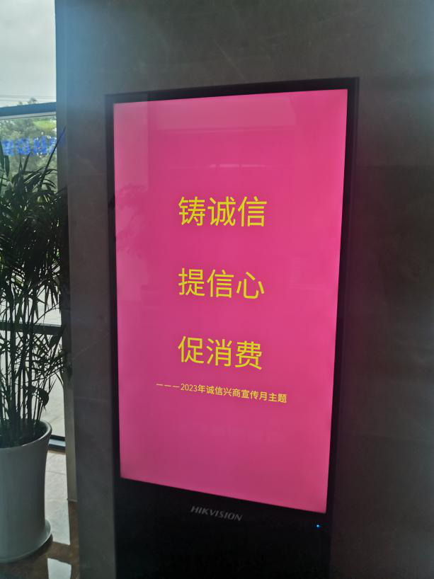 所属弘德公司通过在4S销售店屏幕滚动播放的方式,面向广大顾客宣传诚信经营理念。