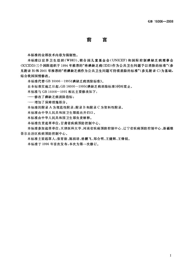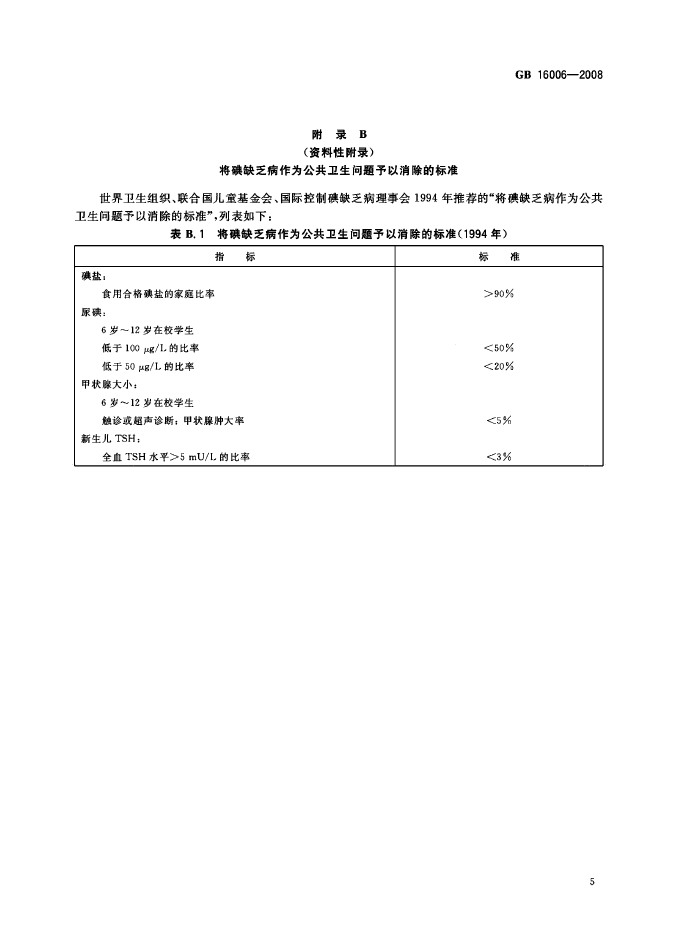 卫生部国标委发布GB16006-2008碘缺乏病消除标准