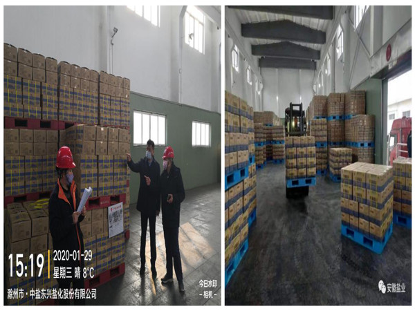 疫情如火,责任如山,充足的库存是保障食盐市场稳定供应的前提。为确保全省食盐市场供应不断档不脱销,安徽盐业发展公司积极响应省盐业集团公司号召,未雨绸缪,早安排早部署。在中盐东兴盐化股份有限公司的积极支持下,克服运输紧张、雨雪天气、交通管制等不便因素,积极组织食盐生产和调运。同时积极协调安徽省新型冠状病毒肺炎疫情防控应急指挥部,紧急办理了应急物资调拨专车通行证,为疫情时期食盐运输开辟了绿色通道,有力保障了民食工需。
