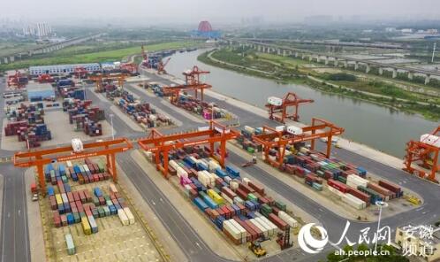 安徽省港航集团旗下的合肥港国际集装箱码头。人民网 张俊摄