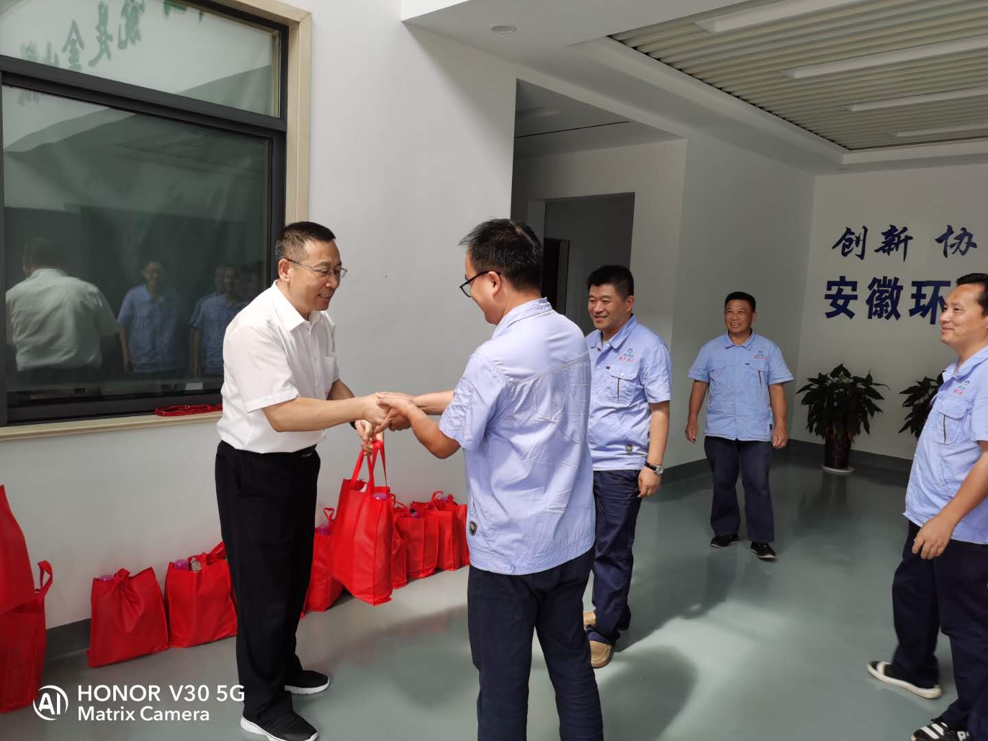8月13日,省盐业集团公司党委书记、董事长马占文,党委委员、副总经理杨晓彬一行到环境科技集团潜山市乡镇生活污水项目现场督导调研并开展“送清凉”活动。