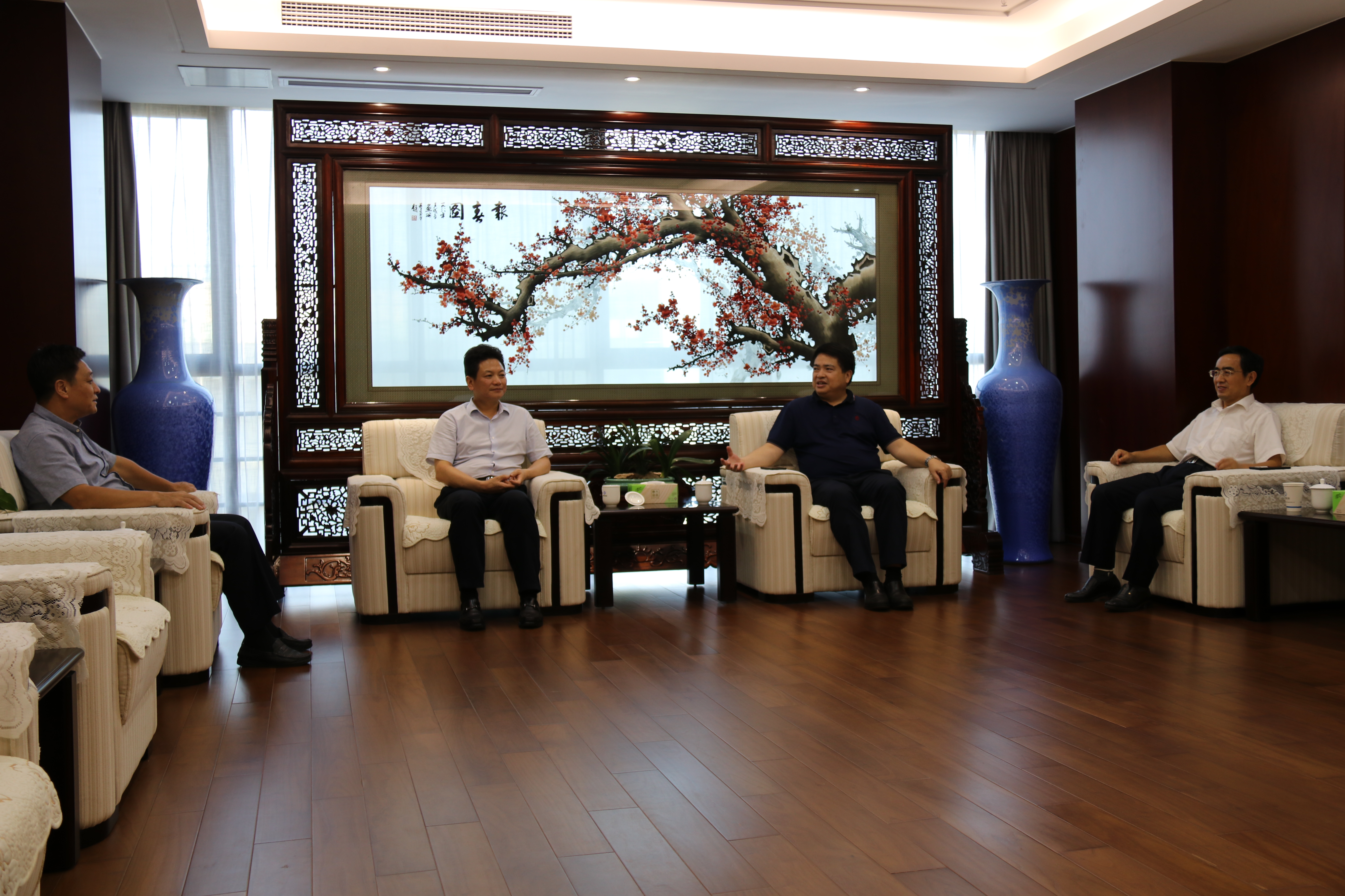 9月10日下午,省盐业集团党委书记、董事长罗太忠,党委副书记、董事、总经理王思军会见来访的皖能集团党委副书记、董事、总经理李明,党委委员、纪委书记、监察专员魏洪文一行。