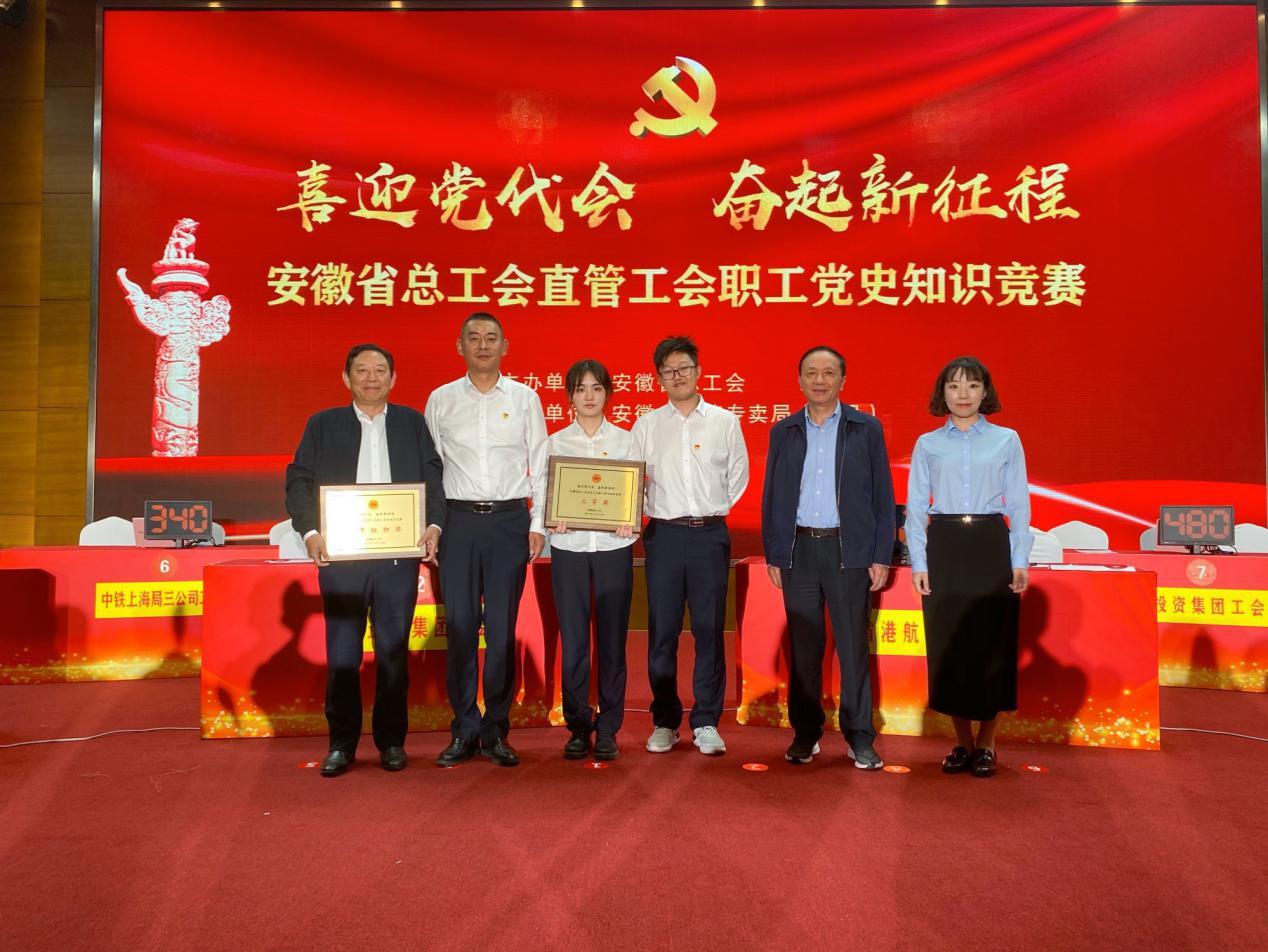 10月19日,在安徽省总工会举办的省总直管工会“喜迎党代会 奋起新征程”党史知识竞赛上,由环境集团周俊、顺朝公司姚旋、酒店公司吴林组成的省盐业集团工会代表队以第2名的成绩荣获二等奖,集团工会获优秀组织奖,充分展示了集团公司党史学习教育成果和良好形象风采。