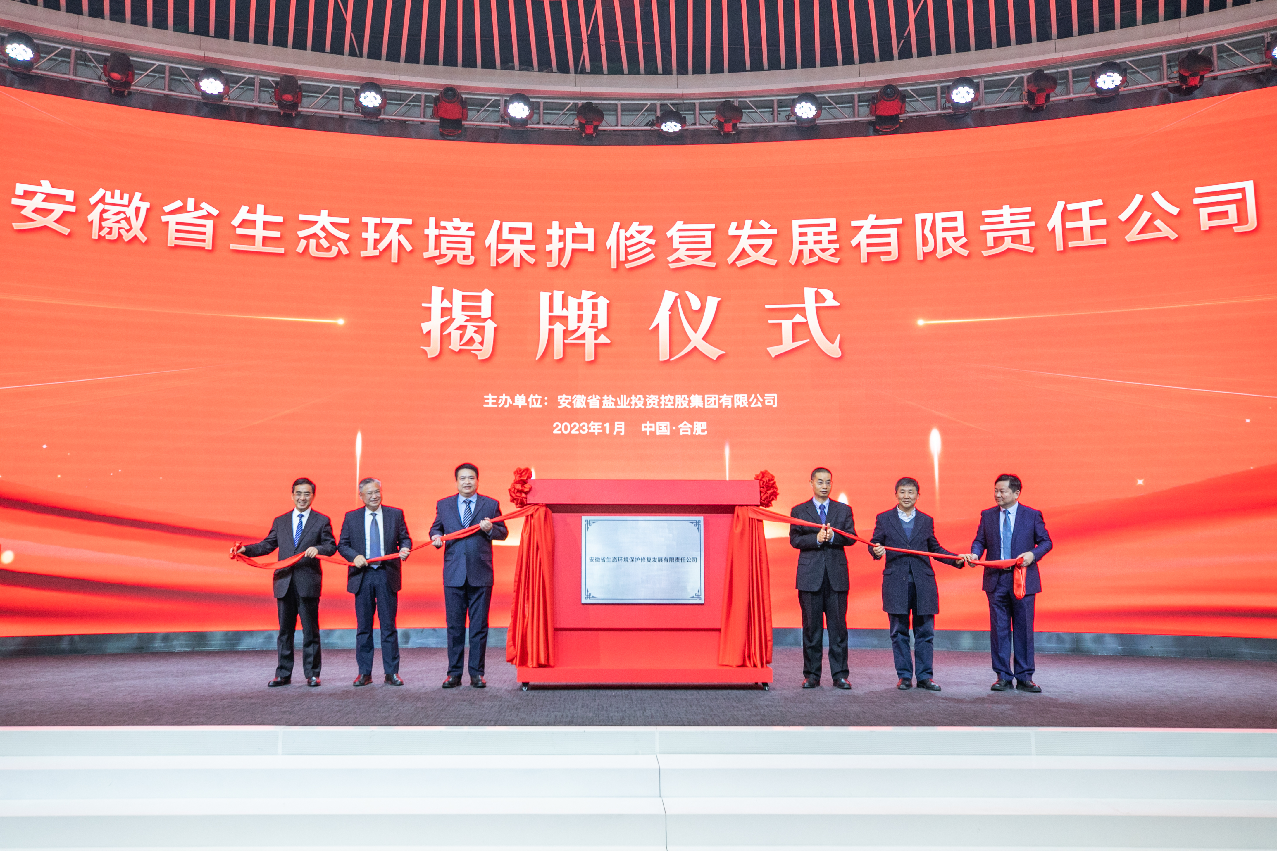 1月11日上午,安徽省生态环境保护修复发展有限责任公司揭牌仪式在合肥市高新区中安创谷科技园全球路演中心举行。省自然资源厅一级巡视员夏炎,省生态环境厅二级巡视员阮敏,合肥市高新区党工委书记、管委会主任宋道军,省盐业集团党委书记、董事长罗太忠,党委副书记、总经理、董事王思军,安徽省生态环境保护修复发展有限责任公司执行董事、总经理王刚出席仪式并为公司揭牌。仪式由王思军主持。