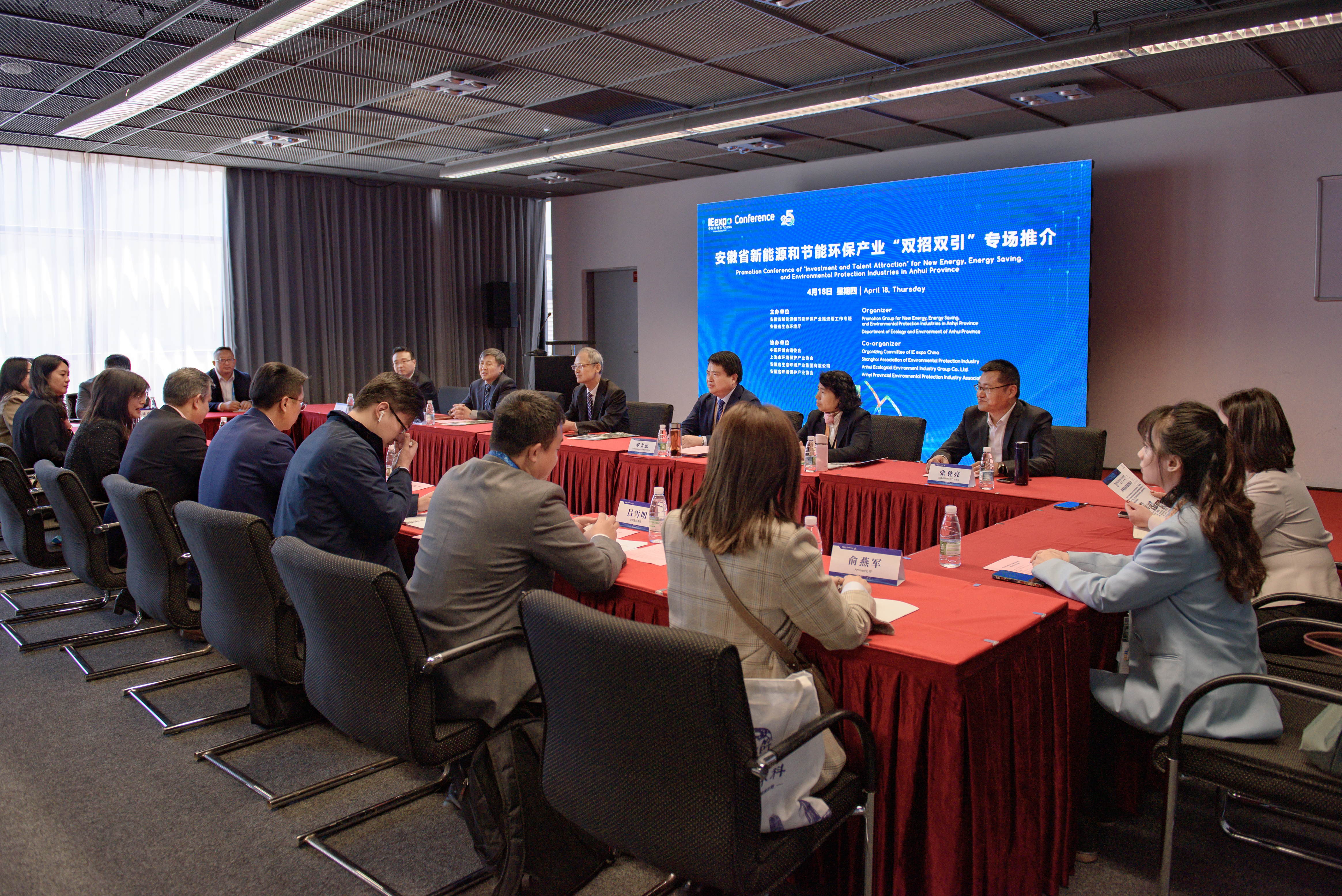 4月18日,由省生态环境厅主办,省生态环境集团等协办的安徽省新能源和节能环保产业“双招双引”专场推介会在上海举行。省生态环境厅副厅长、一级巡视员罗宏,二级巡视员阮敏,省生态环境集团党委书记、董事长罗太忠出席推介会。