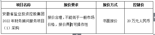 1.项目名称:安徽省盐业投资控股集团2022年财务顾问服务项目(1)