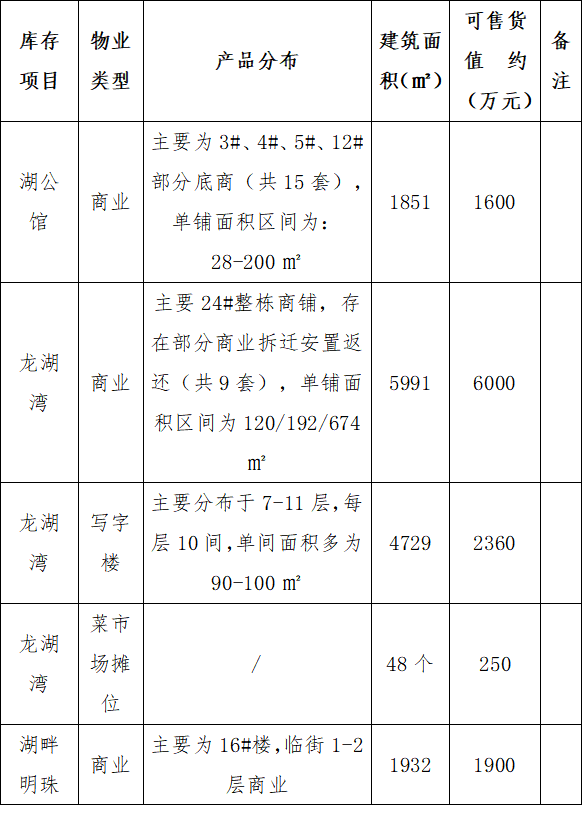 注:以上标段一和标段二的各类物业面积及数量,最终以项目现场货量情况据实销售。