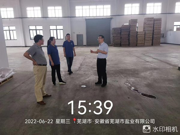 王奇现场检查了芜湖公司安全生产制度建设情况,实地查看了仓库盐品堆码、消防安全设施配备以及叉车操作人员持证上岗等情况,并与芜湖公司领导班子进行座谈。
