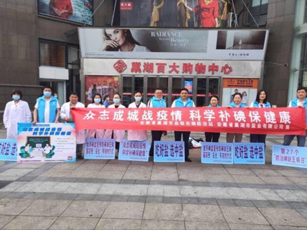 2020年5月15日是我国第27个“防治碘缺乏病日”,今年主题是“众志成城战疫情,科学补碘保健康"。为落实地方病防治工作的重要精神,助力健康扶贫和精准扶贫,推动实现《地方病防治专项三年攻坚行动方案(2018- 2020年)》目标,巢湖市公司协同市血防站积极开展宣传活动。