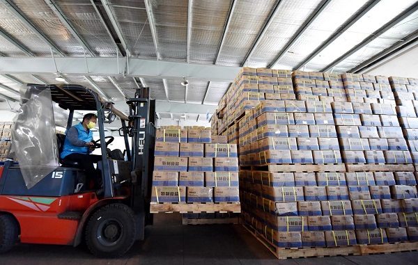 4月22日上午,在巢湖市盐业公司配送中心,仓库内食盐码放如山,储备充足,几名工作人员按防疫要求将食盐搬运至货车上,然后将食盐配送到城区多家商超。据了解,按照巢湖市人民政府、省盐业发展公司、合肥市公司的统一安排和部署,该公司严格执行属地政府各项防疫要求,要求公司全体干部职工密切配合,坚持“非必要、不出行”,严格24小时领导带班制度,要求所有进出公司人员履行扫“二码”和体温测量手续,定期对配送车辆、公共场所、快递进行消毒处理;保持与属地政府联系,对盐矿及其他必要的运输车辆的接送工作,确保库存充足,满足省级储备盐和正常的社会储备,确保满足全市人民的用盐需求。