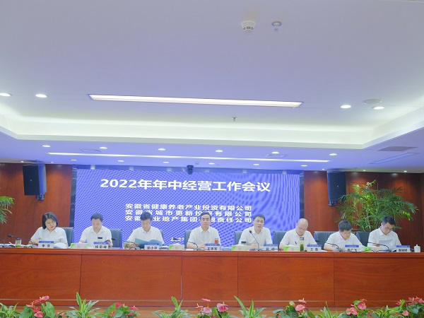 7月19日,省健康养老产业投资有限公司、省城市更新投资有限公司、安徽盐业地产集团有限责任公司三家公司召开2022年年中经营工作会议,总结上半年经营工作,研究部署下半年重点工作。省盐业集团党委副书记、总经理、董事,省康养公司等三家公司党委书记、董事长王思军出席会议并作总结讲话,省盐业集团总法律顾问、省康养公司等三家公司副董事长戴斌主持会议并传达省盐业集团2022年年中会议精神。省康养公司等三家公司党委委员、总经理吴小平部署下半年经营工作,省康养公司等三家公司党委副书记、董事王晟通报上半年经营工作情况,三家公司领导班子成员、本部中层负责人、各项目公司中层以上管理人员参加会议。