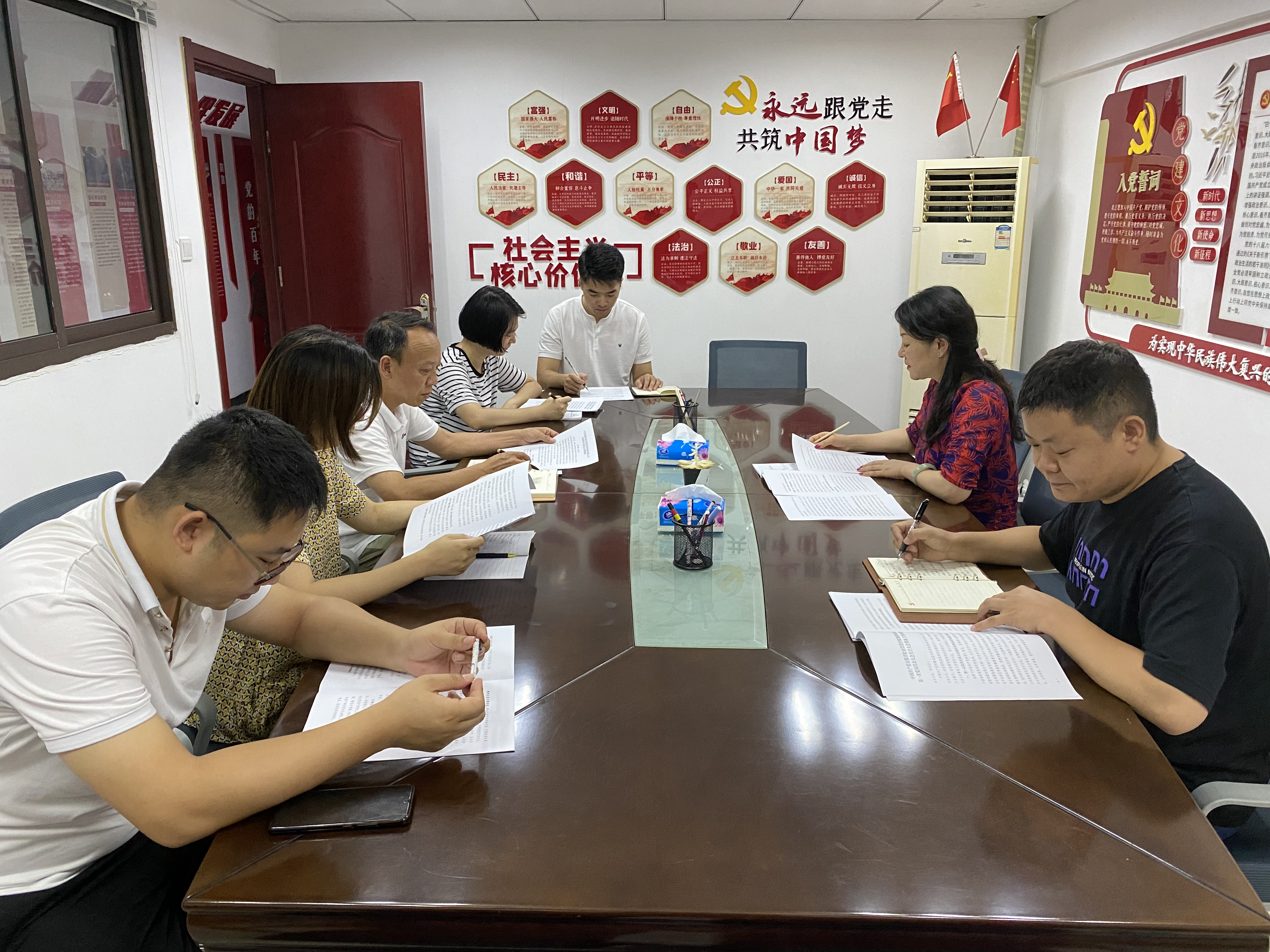 2022年7月18日上午,安盐商贸党支部召开专题会议学习传达集团公司第一次党代会精神,公司全体党员及中层干部参加学习。