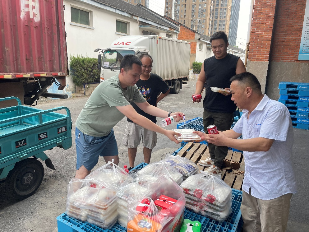 天气炎热、排队等候时间长,合肥市公司为客户和驾驶员免费提供矿泉水和盒饭。