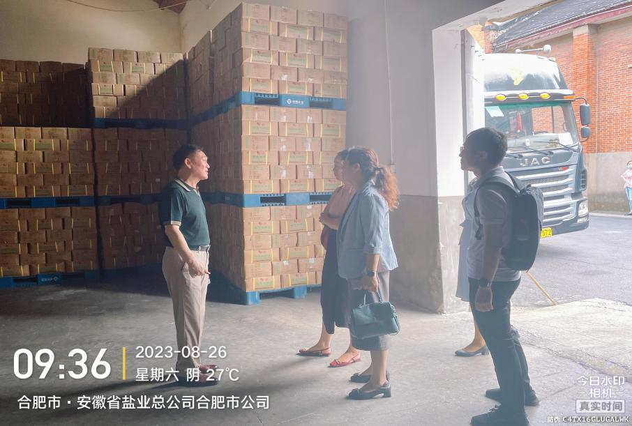8月26日上午省经信厅戴琳琳处长、市经信局总工郭梅赴合肥市公司现场调研,详细了解两日来盐品销售及储备盐库存情况,对合肥盐业在抢购期间应急保供、稳定市场、充足储备盐库存工作给予了充分肯定,同时要求合肥市公司继续以保民生为首要任务,密切关注市场动态并及时上报。