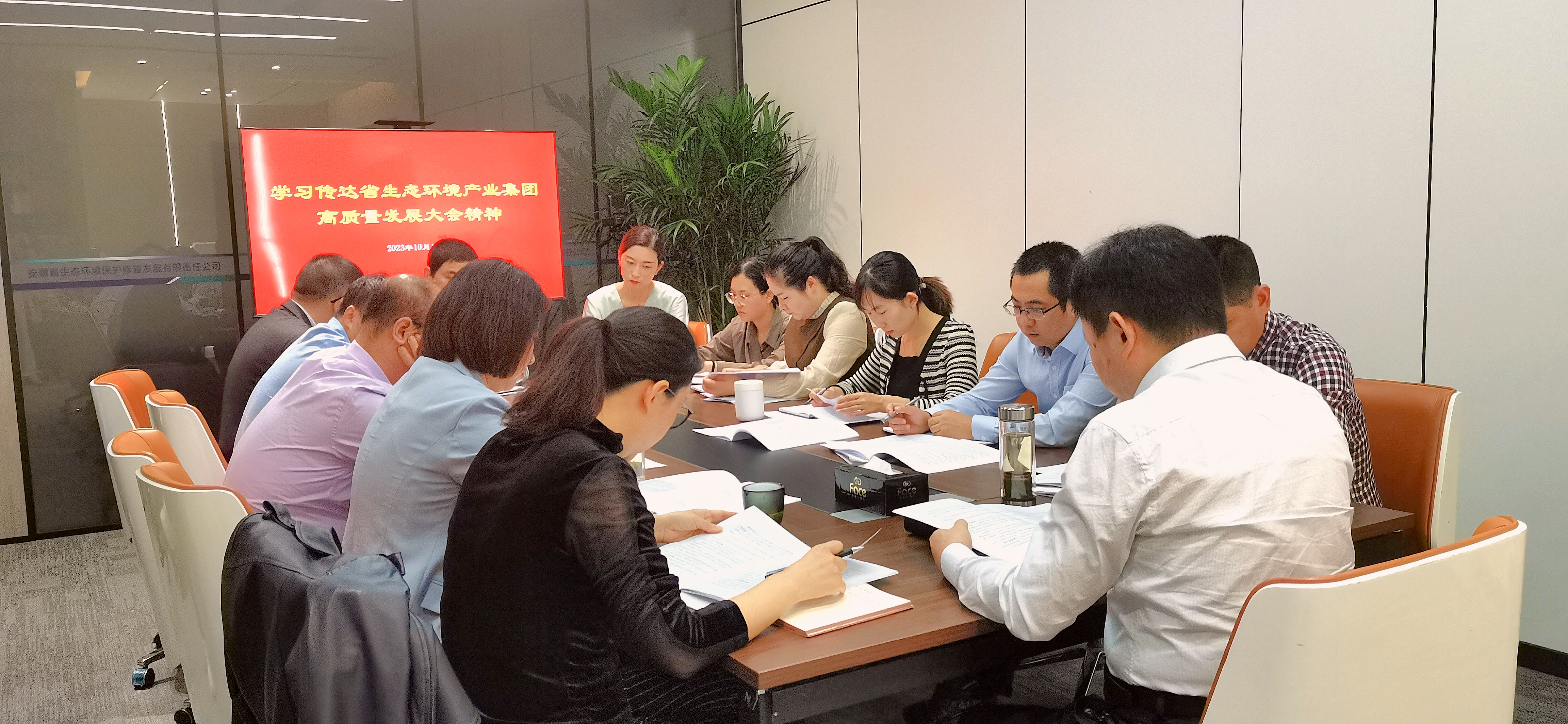 会议重点学习了省生态环境产业集团推动高质量发展“大学习”“大讨论”“大整治”“大发展”四个工作方案,全文传达学习省生态环境产业集团党委书记、董事长罗太忠题为《与大势同向,与机遇同行,与美好同在,为打造长三角标杆生态环境集团而不懈奋斗》工作报告,统一思想认识,提出贯彻落实意见。