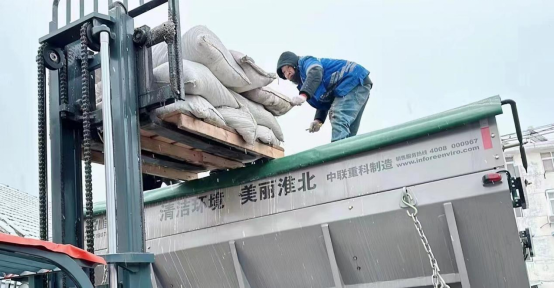 合肥盐业公司全体职工全员上岗,开展融雪盐配送工作。