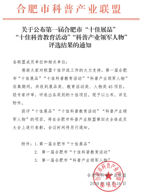 近日,由合肥市科普产业联盟举办的第一届合肥市“十佳展品”“十佳科普教育活动”“科普产业领军人物”评选结果公布,合肥盐业“盐”学之旅——食盐科普研学活动荣膺第一届合肥市“十佳科普教育活动”。