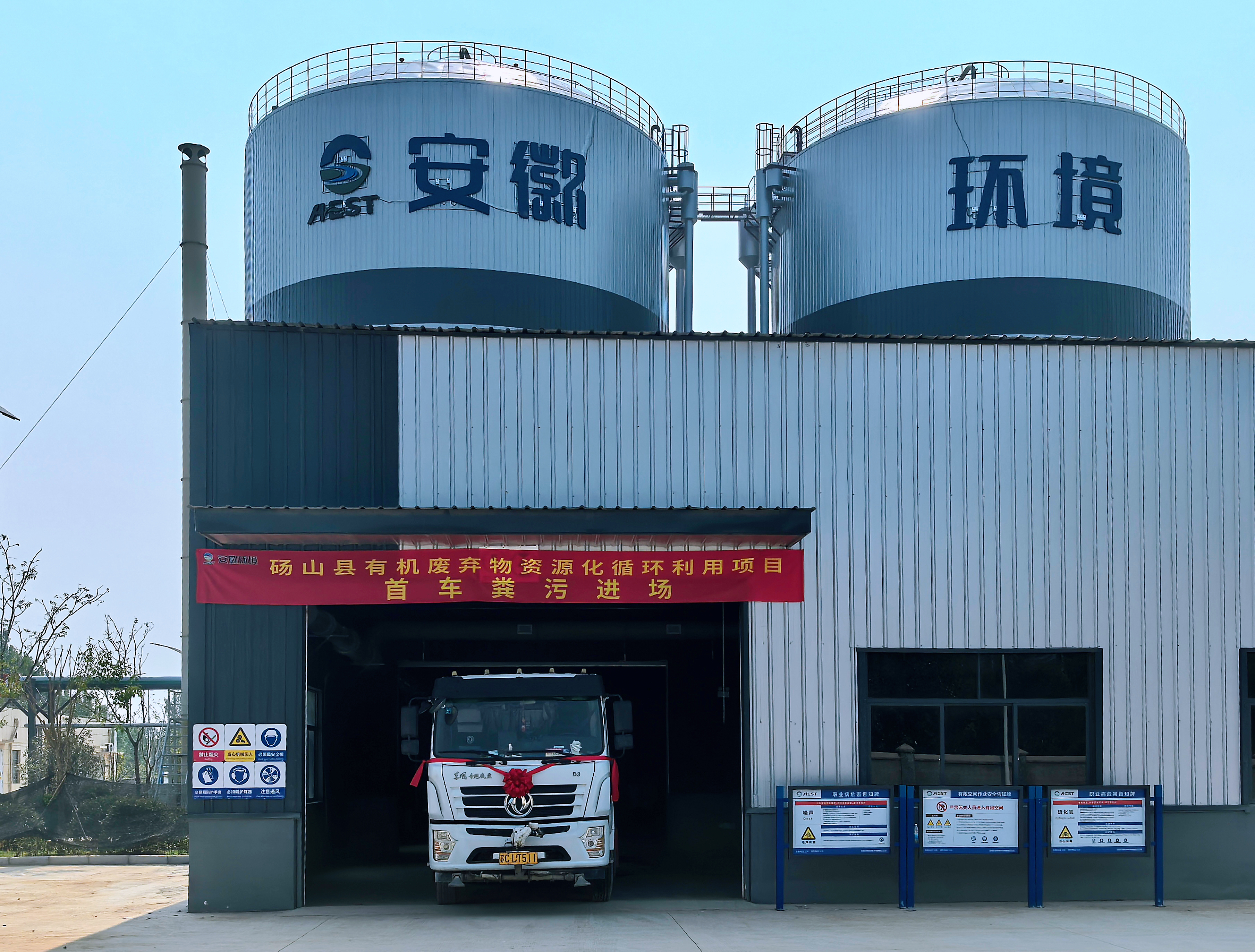 2025年5月28日9点28分,随着进场指令的下达,砀山县有机废弃物资源化循环利用项目首辆粪污运输车由物流通道缓慢进入厂区,经过地磅平台,在现场管理人员的引导下,顺利完成首车粪污卸载入池,标志着砀山县开启有机废弃物“减量化、无害化、资源化”处理新篇章。