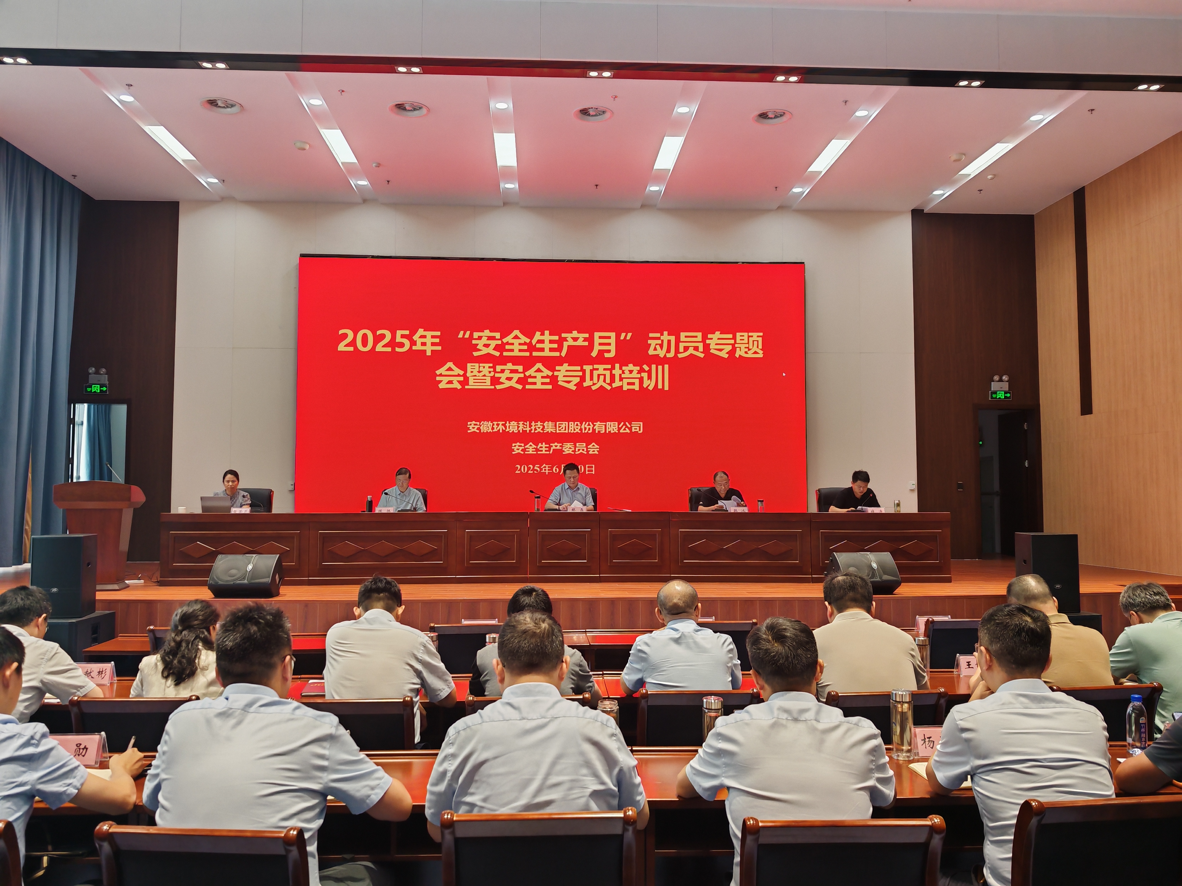 为深入贯彻落实国家关于安全生产工作的决策部署,强化全员安全意识,压实安全责任链条,安徽环境科技集团于6月10日下午隆重召开2025年“安全生产月”动员暨安全专项培训会,正式拉开以“人人讲安全、个个会应急——查找身边安全隐患”为主题的安全生产月活动序幕。集团领导班子成员、各部门、各子(项目)公司主要负责人、分管安全领导及专兼职安全管理人员等百余人现场参会。